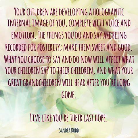 Instead of being my mother's child, I am my children's mother. Sandra Dodd **
