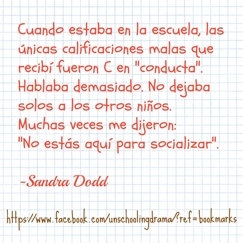 "When I was in school, the only bad grades I ever got were C's in "conduct" or deportment. I talked too much. I didn't leave other kids alone. I was told many times, 'You're not here to socialize'." — Sandra Dodd SandraDodd.com/socialization