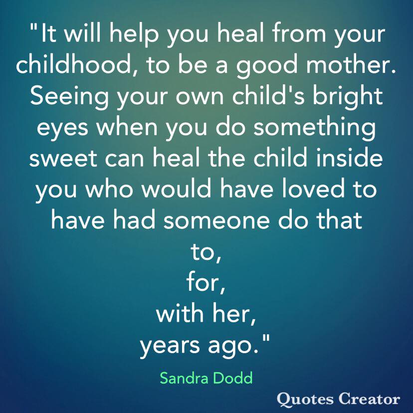 Instead of being my mother's child, I am my children's mother. Sandra Dodd **