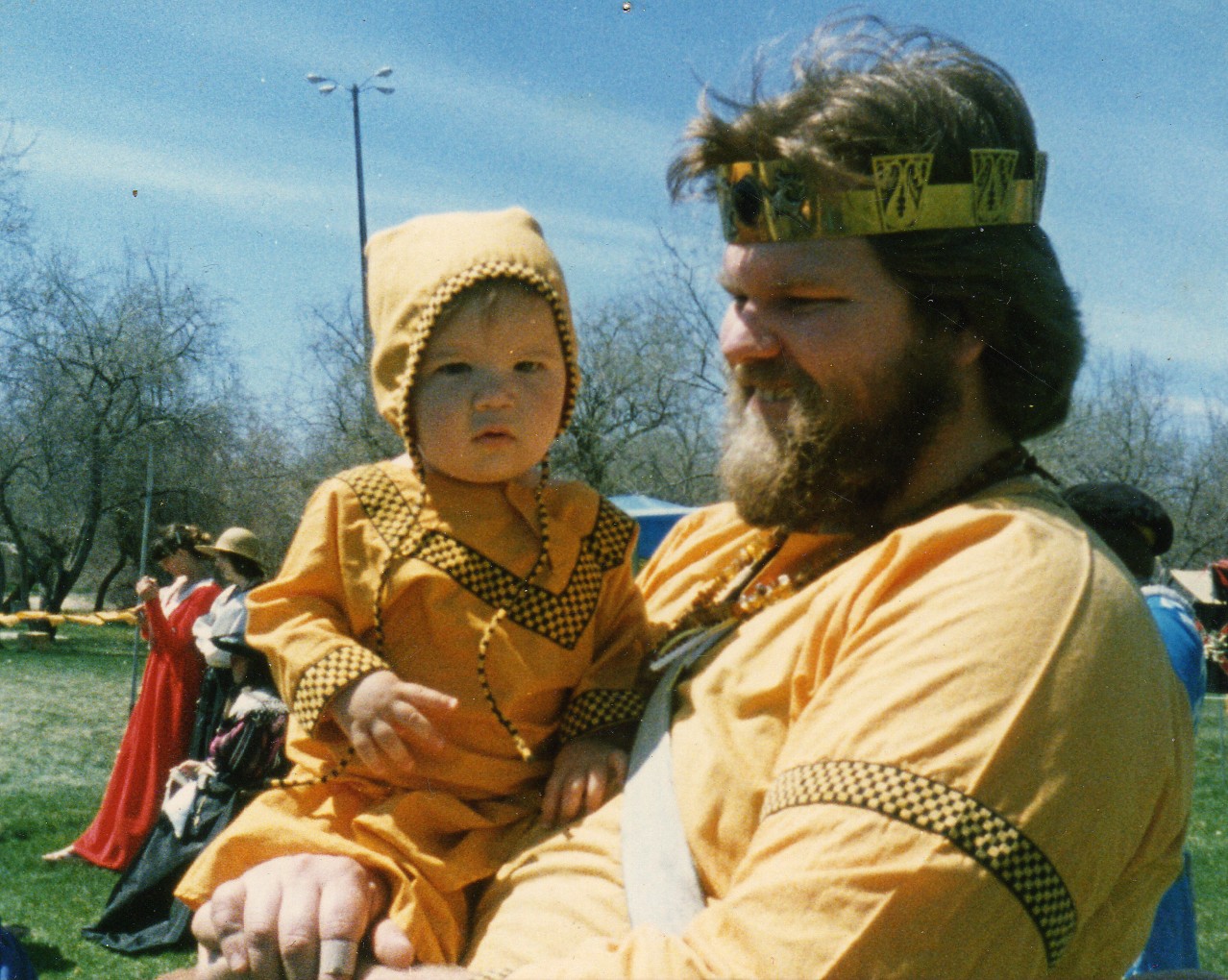 I recently read your article on making baby and children's garb. I agree with you that children should be in garb at events. I did make a few things for each of my girls, and had great success with two ideas that I had for evening and morning.I made a large tabbard for evening when my youngest daughter was just born. I put her in her footed pajamas, covered her legs with a blanket and put the (my bad here) fleece tabbard over the top to keep her warm and her modern clothing hidden. She was very comfortable.