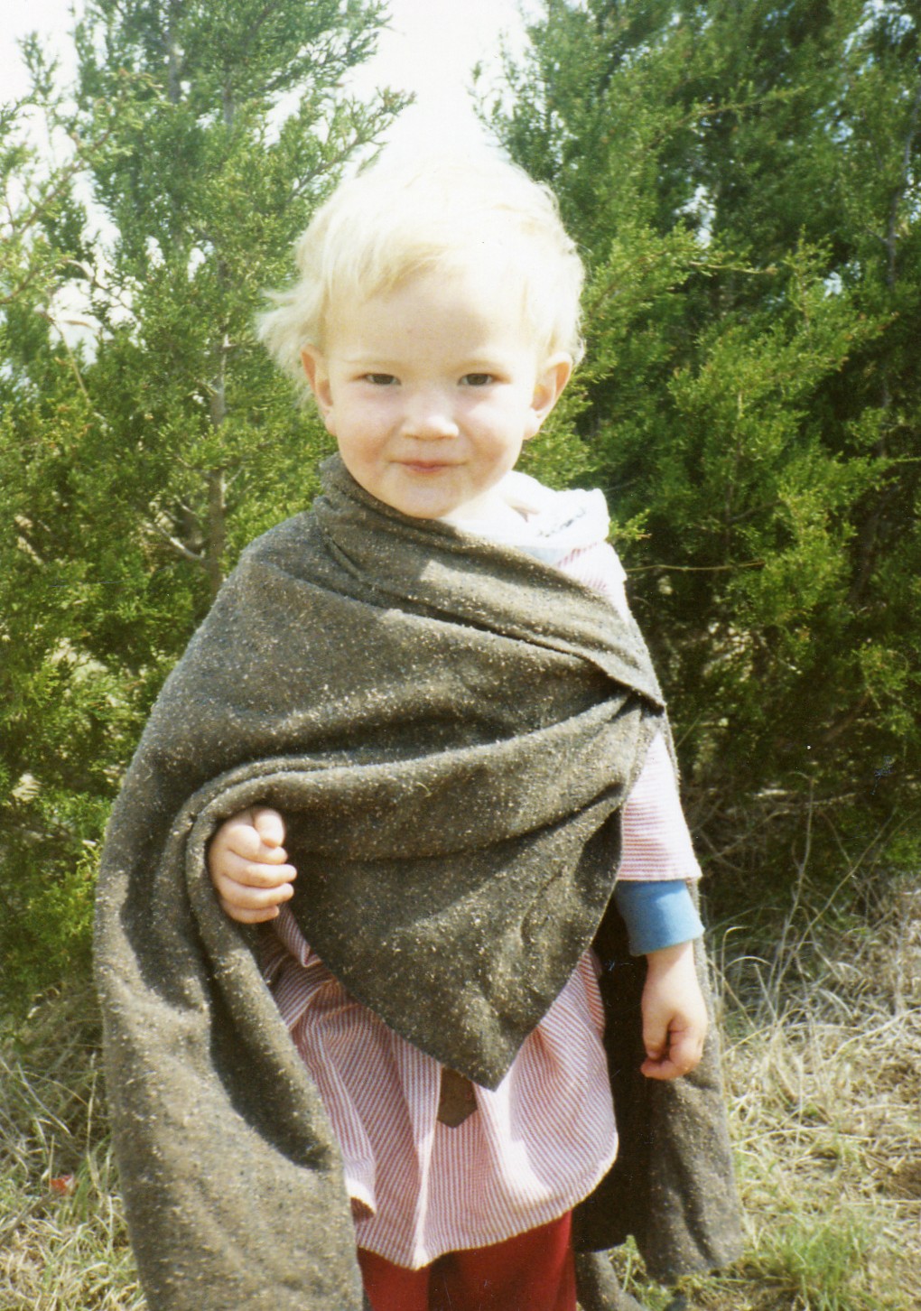 I've been known to go pretty far to prove a point, and so I had a baby of my own. He's over a year old, and he's always been in costume at events. He has crawled, and he has walked. I made three costumes, received others as gifts or hand-me-downs, and a couple of items were makeshift from mundane parts—in combination with other things, he's worn tights, knitted leggings (heavy tights without feet), a Danish hooded drawstring gown, and a Mexican shirt. I made him breeches with feet and a coif from the pattern of their modern equivalents—bonnet and pajama bottoms (McCall's #9331). Once when he needed to appear in diaper only, I covered up the plastic diaper with a large gauze rectangle, tied in knots at the sides, and it looked just like a cloth diaper, but still had the practical advantages of Ultra Pampers. (I've never been against modern underwear personally, but if you prefer and can create period-to-the-skin costumes, that's great).