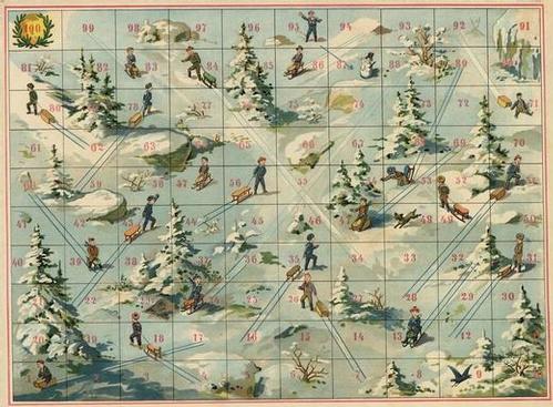 Thanks for your web page! I found it by chance as my husband and I were trying to find an on-line snake and ladder game. It was a great surprise for me as I recognised the snake and ladder board I used to play with twenty years ago when I was a child: the sleds and toboggans. Actually, this board had belonged to my great-grand-mother, and had been kept since then by my grand-mother. As a 10-year-old child, I marvelled at the thought I was playing with a game my great-grand mother used to play with at the beginning of the century!