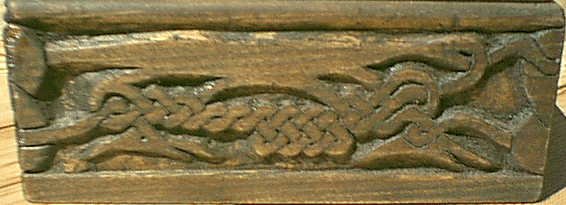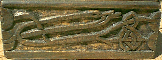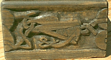 Dragon heads for Viking a-frame. The eyes are knots in the wood. Front and back details are shown. Click to enlarge (and you can click there for further enlargement).