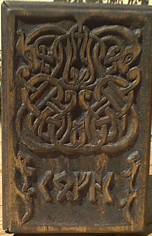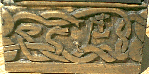 In June 2007, Keith did a workshop (as Gunwaldt Gulbjorn; an SCA workshop) on knotwork. Photos and notes are here. There are also photos of a knotwork spoon made by Will Heron, and Bardolf's shield (also shown below).