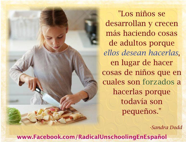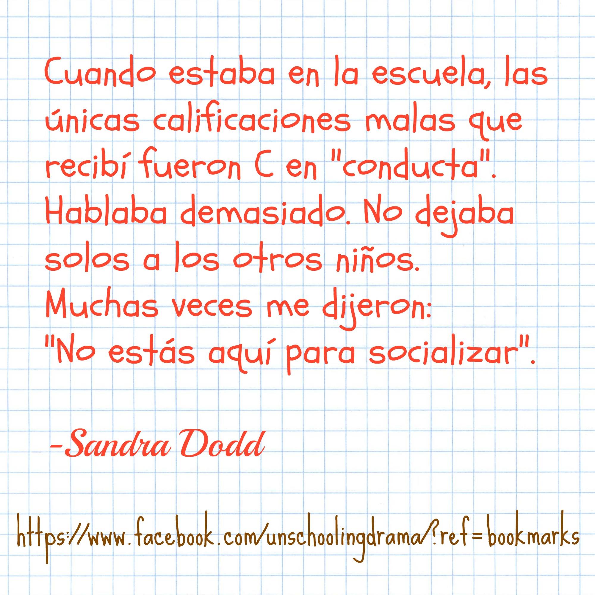 "Mi mundo es sensacional. Gradualmente se ha ido convirtiendo aun mas sensacional desde que tuve Hijos y he tratado de encontrar la manera de hacer de SU mundo algo sensacional. Mi mundo solo ha obtenido el beneficio secundario de lo que Yo he aprendido al ayudarles a ser felices." —Sandra Dodd