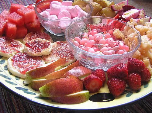 Most of these images were from a photo contest years back. Some are too sugary-looking for my tastes, and the presence of dip defeats the original purpose for me of it being like what the monkeys had (and of being non-messy), but these represent the natural interpretation and evolution of the idea in real families! And every one of them looks fun, too. 🙂 It's like party food without needing a party. Photos can be clicked to enlarge: