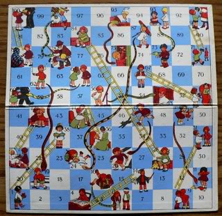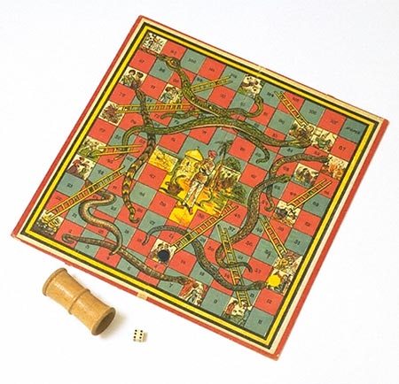 Thanks for your web page! I found it by chance as my husband and I were trying to find an on-line snake and ladder game. It was a great surprise for me as I recognised the snake and ladder board I used to play with twenty years ago when I was a child: the sleds and toboggans. Actually, this board had belonged to my great-grand-mother, and had been kept since then by my grand-mother. As a 10-year-old child, I marvelled at the thought I was playing with a game my great-grand mother used to play with at the beginning of the century!