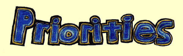 | Note on something in the very top quote: "You seem to be saying that the two priorities are mutually exclusive."Priorities have literally to do with rankings. Two "priorities" can't be equal, or there is no "priority" (first-in-lineness, precedence). So if they are to be called "priorities" then I suppose one has to exclude the other at that point of decision making. But people can have two favorite causes or missions or concerns, and lots of times the precedence of them won't matter. When it does, that's when they learn their priorities. Some people's priority is keeping the neighbors happy or satisfying their mom's questions. That tends to put the kids way, way down the list, especially if yardwork and housework and auto care and nice coats and groomed pets are priorities (being on the real or imagined neighborly or parental checklists). Sometimes all that's needed to clarify thinking is to look at the words we use and what they really mean. "Equal priorities" means "no priorities." |